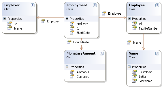 }NHibernate is not restricted in its usage of property types, all .NET types and primitives (like string, char and DateTime) can be mapped, including classes from the System.Collections.Generic namespace. You can map them as values, collections of values, or associations to other entities. The Id is a special property that represents the database identifier (primary key) of that class, it is highly recommended for entities like a Cat. NHibernate can use identifiers only internally, without having to declare them on the class, but we would lose some of the flexibility in our application architecture.